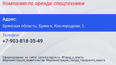 Компания по аренде спецтехники по адресу Брянская область, Брянск, Кислородная, 1 в дальнейшем Организация, размещена в следующих категориях: