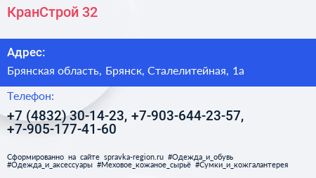 КранСтрой 32 по адресу Брянская область, Брянск, Сталелитейная, 1а в дальнейшем Организация, размещена в следующих категориях: