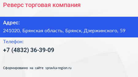 Реверс, торговая компания по адресу 241020, Брянская область, Брянск, Дзержинского, 59 в дальнейшем Организация, размещена в следующих категориях: