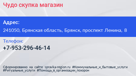 Чудо скупка, магазин по адресу 241050, Брянская область, Брянск, проспект Ленина, 8 в дальнейшем Организация, размещена в следующих категориях: