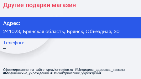 Другие подарки, магазин по адресу 241023, Брянская область, Брянск, Объездная, 30 в дальнейшем Организация, размещена в следующих категориях: