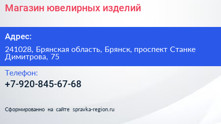 Магазин ювелирных изделий по адресу 241028, Брянская область, Брянск, проспект Станке Димитрова, 75 в дальнейшем Организация, размещена в следующих категориях: