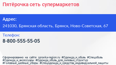 Пятёрочка, сеть супермаркетов по адресу 241030, Брянская область, Брянск, Ново-Советская, 67 в дальнейшем Организация, размещена в следующих категориях: