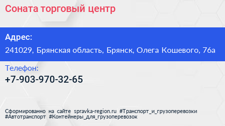 Соната, торговый центр по адресу 241029, Брянская область, Брянск, Олега Кошевого, 76а в дальнейшем Организация, размещена в следующих категориях:
