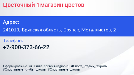 Цветочный №1, магазин цветов по адресу 241013, Брянская область, Брянск, Металлистов, 2 в дальнейшем Организация, размещена в следующих категориях:
