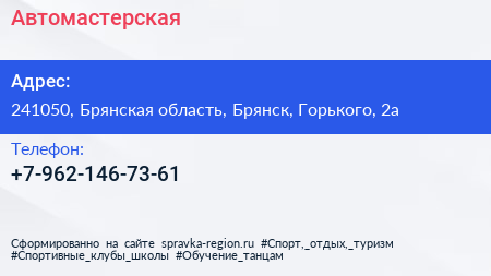 Автомастерская по адресу 241050, Брянская область, Брянск, Горького, 2а в дальнейшем Организация, размещена в следующих категориях: