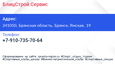 БлицСтрой-Сервис по адресу 241050, Брянская область, Брянск, Ямская, 19 в дальнейшем Организация, размещена в следующих категориях: