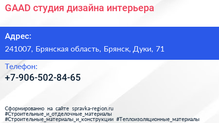 GAAD, студия дизайна интерьера по адресу 241007, Брянская область, Брянск, Дуки, 71 в дальнейшем Организация, размещена в следующих категориях: