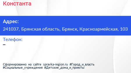 Константа по адресу 241037, Брянская область, Брянск, Красноармейская, 103 в дальнейшем Организация, размещена в следующих категориях: