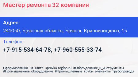 Мастер ремонта 32, компания по адресу 241050, Брянская область, Брянск, Крапивницкого, 15 в дальнейшем Организация, размещена в следующих категориях: