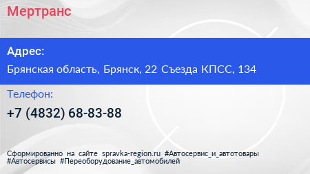 Мертранс по адресу Брянская область, Брянск, 22 Съезда КПСС, 134 в дальнейшем Организация, размещена в следующих категориях: