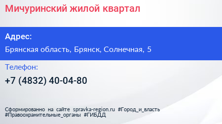 Мичуринский, жилой квартал по адресу Брянская область, Брянск, Солнечная, 5 в дальнейшем Организация, размещена в следующих категориях: