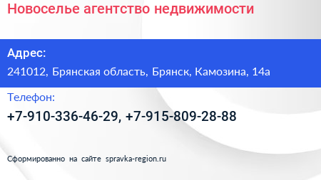 Новоселье, агентство недвижимости по адресу 241012, Брянская область, Брянск, Камозина, 14а в дальнейшем Организация, размещена в следующих категориях: