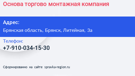 Основа, торгово-монтажная компания по адресу Брянская область, Брянск, Литейная, 3а в дальнейшем Организация, размещена в следующих категориях: