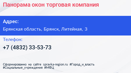 Панорама окон, торговая компания по адресу Брянская область, Брянск, Литейная, 3 в дальнейшем Организация, размещена в следующих категориях: