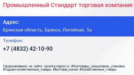 Промышленный Стандарт, торговая компания по адресу Брянская область, Брянск, Литейная, 5а в дальнейшем Организация, размещена в следующих категориях: