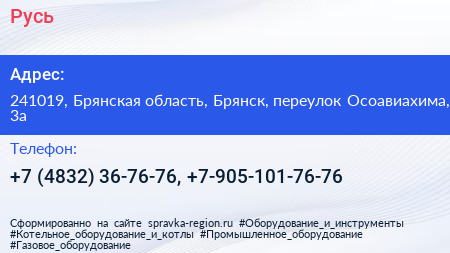 Русь по адресу 241019, Брянская область, Брянск, переулок Осоавиахима, 3а в дальнейшем Организация, размещена в следующих категориях: