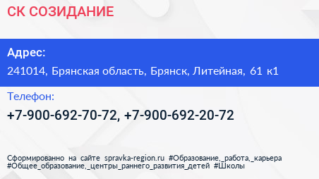 СК СОЗИДАНИЕ по адресу 241014, Брянская область, Брянск, Литейная, 61 к1 в дальнейшем Организация, размещена в следующих категориях: