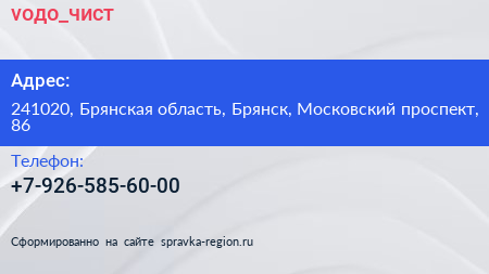 voдо_чист по адресу 241020, Брянская область, Брянск, Московский проспект, 86 в дальнейшем Организация, размещена в следующих категориях: