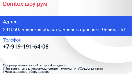 Domtex, шоу-рум по адресу 241050, Брянская область, Брянск, проспект Ленина, 61 в дальнейшем Организация, размещена в следующих категориях: