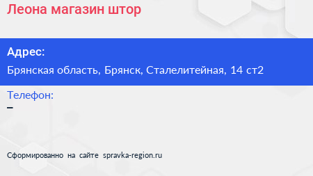 Леона, магазин штор по адресу Брянская область, Брянск, Сталелитейная, 14 ст2 в дальнейшем Организация, размещена в следующих категориях: