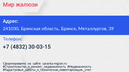 Мир жалюзи по адресу 241030, Брянская область, Брянск, Металлургов, 39 в дальнейшем Организация, размещена в следующих категориях:
