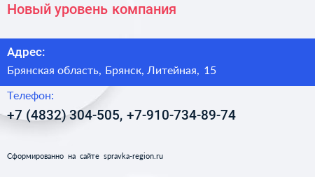 Новый уровень, компания по адресу Брянская область, Брянск, Литейная, 15 в дальнейшем Организация, размещена в следующих категориях: