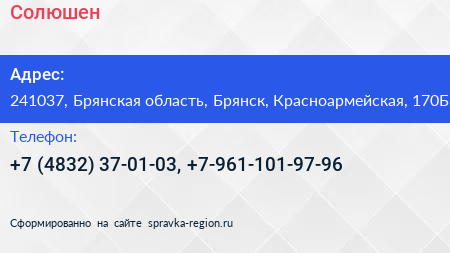 Солюшен по адресу 241037, Брянская область, Брянск, Красноармейская, 170Б в дальнейшем Организация, размещена в следующих категориях: