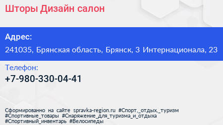 Шторы & Дизайн, салон по адресу 241035, Брянская область, Брянск, 3 Интернационала, 23 в дальнейшем Организация, размещена в следующих категориях: