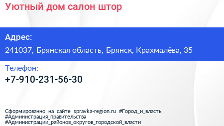 Уютный дом, салон штор по адресу 241037, Брянская область, Брянск, Крахмалёва, 35 в дальнейшем Организация, размещена в следующих категориях: