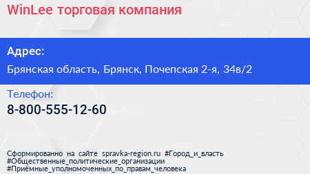 WinLee, торговая компания по адресу Брянская область, Брянск, Почепская 2-я, 34в/2 в дальнейшем Организация, размещена в следующих категориях: