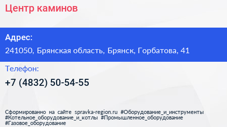 Центр каминов по адресу 241050, Брянская область, Брянск, Горбатова, 41 в дальнейшем Организация, размещена в следующих категориях: