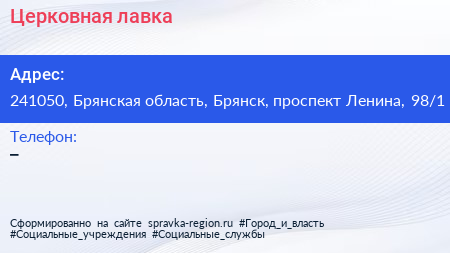 Церковная лавка по адресу 241050, Брянская область, Брянск, проспект Ленина, 98/1 в дальнейшем Организация, размещена в следующих категориях: