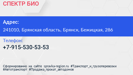 СПЕКТР-БИО по адресу 241010, Брянская область, Брянск, Бежицкая, 286 в дальнейшем Организация, размещена в следующих категориях: