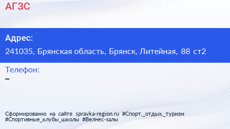 АГЗС по адресу 241035, Брянская область, Брянск, Литейная, 88 ст2 в дальнейшем Организация, размещена в следующих категориях: