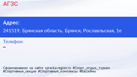 АГЗС по адресу 241519, Брянская область, Брянск, Рославльская, 1е в дальнейшем Организация, размещена в следующих категориях: