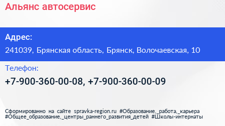Альянс, автосервис по адресу 241039, Брянская область, Брянск, Волочаевская, 10 в дальнейшем Организация, размещена в следующих категориях: