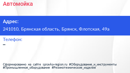 Автомойка по адресу 241010, Брянская область, Брянск, Флотская, 49а в дальнейшем Организация, размещена в следующих категориях: