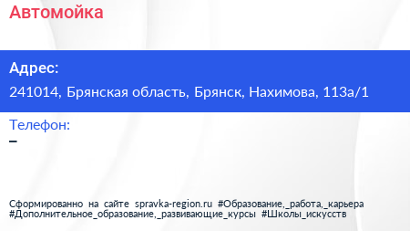 Автомойка по адресу 241014, Брянская область, Брянск, Нахимова, 113а/1 в дальнейшем Организация, размещена в следующих категориях: