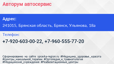 Авторум, автосервис по адресу 241015, Брянская область, Брянск, Ульянова, 18а в дальнейшем Организация, размещена в следующих категориях: