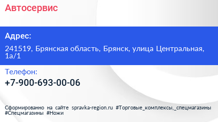 Автосервис по адресу 241519, Брянская область, Брянск, улица Центральная, 1а/1 в дальнейшем Организация, размещена в следующих категориях: