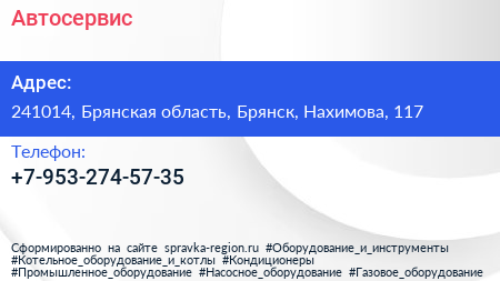 Автосервис по адресу 241014, Брянская область, Брянск, Нахимова, 117 в дальнейшем Организация, размещена в следующих категориях: