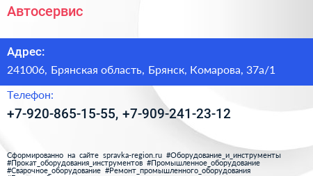 Автосервис по адресу 241006, Брянская область, Брянск, Комарова, 37а/1 в дальнейшем Организация, размещена в следующих категориях:
