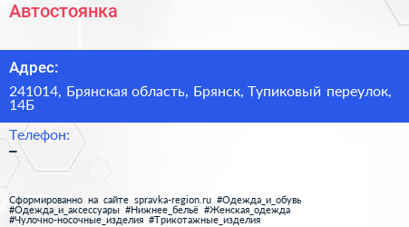 Автостоянка по адресу 241014, Брянская область, Брянск, Тупиковый переулок, 14Б в дальнейшем Организация, размещена в следующих категориях: