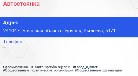 Автостоянка по адресу 241047, Брянская область, Брянск, Рылеева, 51/1 в дальнейшем Организация, размещена в следующих категориях:
