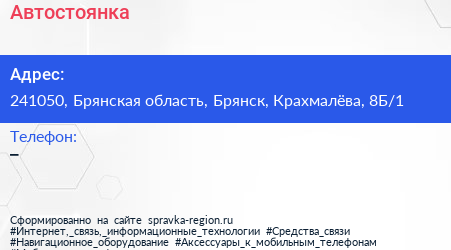 Автостоянка по адресу 241050, Брянская область, Брянск, Крахмалёва, 8Б/1 в дальнейшем Организация, размещена в следующих категориях: