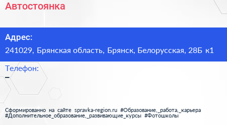 Автостоянка по адресу 241029, Брянская область, Брянск, Белорусская, 28Б к1 в дальнейшем Организация, размещена в следующих категориях: