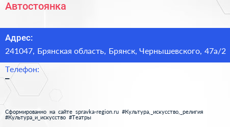 Автостоянка по адресу 241047, Брянская область, Брянск, Чернышевского, 47а/2 в дальнейшем Организация, размещена в следующих категориях: