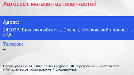 Автосвет, магазин автозапчастей по адресу 241029, Брянская область, Брянск, Московский проспект, 37д в дальнейшем Организация, размещена в следующих категориях: