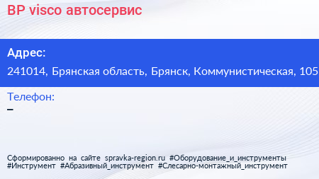 BP visco, автосервис по адресу 241014, Брянская область, Брянск, Коммунистическая, 105 в дальнейшем Организация, размещена в следующих категориях: